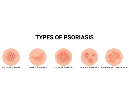 Different types of psoriasis include psoriasis vulgaris, plaque